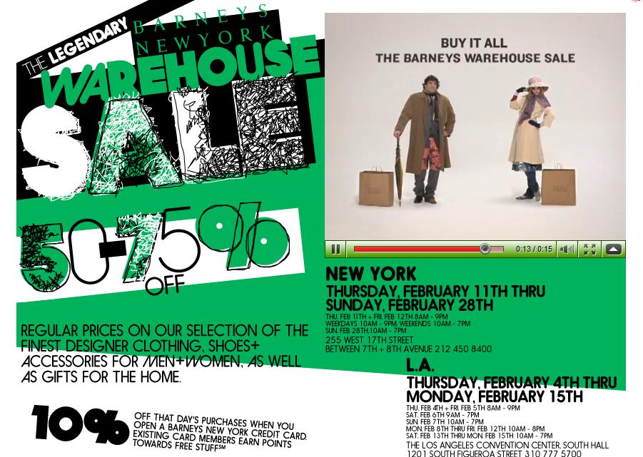 It's that time of year again - thank Goodness! The Barneys Warehouse Sale offers you up to 85% off retail prices on mens and womens clothing & accessories.