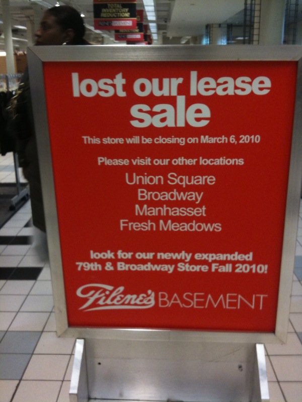 The Filene's Basement in Chelsea is closing and cleaning shop by marking down merchandise from 70% to 90% off. Store will close on 2/26