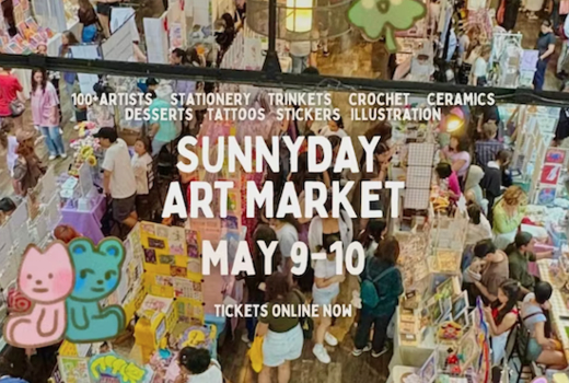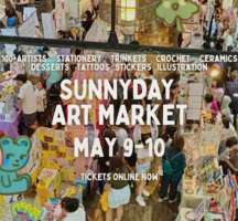 Welcome to the SUNNYDAY art market! Stop by to shop for trinkets, original art, and enjoy delicious snacks. There will also be fun activities like a message wall, trinket trading and stationary meetup event, flash tattoos, and more!