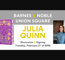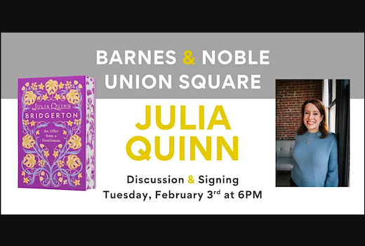B&N Union Square in NYC welcomes Julia Quinn to discuss AN OFFER FROM A GENTLEMAN! They welcome #1 New York Times bestselling author Julia Quinn as she celebrates AN OFFER FROM A GENTLEMAN Deluxe Collector's Edition. The inspiration for season four of BRIDGERTON, this Regency-era Cinderella retelling offers a generous dose of heartwarming banter, humor, and romantic angst. Sophie and Benedict take center stage in this one.