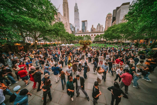 Stop by Bryant Park for a live dance party with Bachata instruction from Fausto Felix and live dance music from Liza & Willie. Don't miss out on a night of great vibes, great dance moves, and even better music.