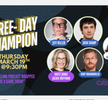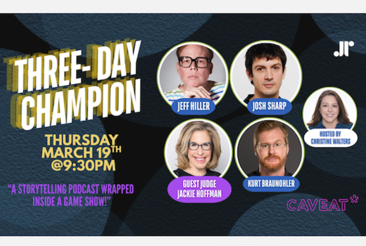 Three-Day Champion is a comedic storytelling show wrapped inside game show format that asks, if you were a three-day champion on a game show, what three stories about yourself would you choose to tell?