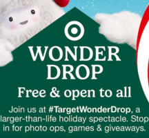 Join Target at Target Wonder Drop, a larger-than-life holiday spectacle. This is a shoppable, open-to-the-public holiday experience in New York City’s Domino Park from December 5–7 where guests can shop, win giveaways, play games and join brand activations with LEGO, Hasbro, Dove and more. Free and open to all at Domino Park!