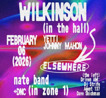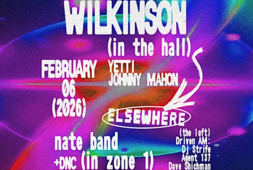 Join Elsewhere for a club night built on great music. with headliner Wilkinson. There will also be acts from nate band, Yetti, Johnny Mahon, and DNC. Don't miss out on a night of great vibes and better music.
