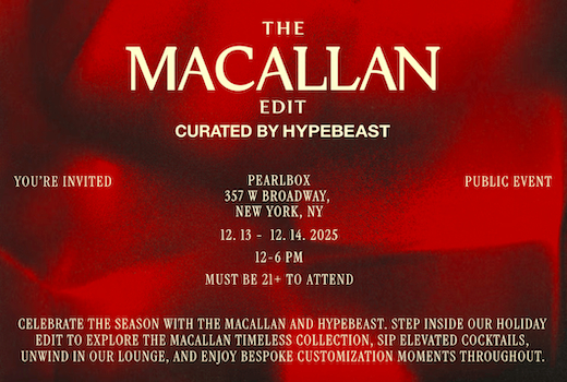 Toast to the holiday season with a refined retail and lounge experience showcasing The Macallan’s best-in-class whisky. The Macallan Edit, Curated by Hypebeast, is a weekend destination built for slowing down, offering complimentary cocktails, elevated gifting moments, and a space designed for sipping and staying awhile. Welcoming whisky enthusiasts, style-minded guests, and those seeking the perfect gift, The Macallan sets the tone for entering the New Year on a high note.