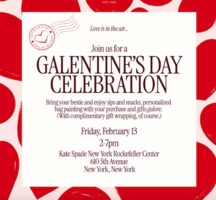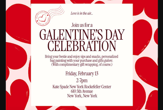 This Galentine’s Day, Kate Spade New York is turning friendship into the main event. On Friday, February 13, the brand will host a festive in-store celebration at Kate Spade New York Rockefeller Center, 610 5th Ave, inviting besties, brand fans, and shoppers to celebrate together in signature Kate Spade style. Guests will enjoy a thoughtfully curated in-store experience featuring with-purchase bag painting by local artists, complimentary gift wrapping, postcard fixtures, sips and snacks, special giveaways, and more.