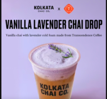 Kolkata is linking up with their friends at Transcendence Coffee for a delicious Spring drop: Vanilla Chai with Lavender Cold Foam. Free chai samples, bites, music and good vibes from 3:00pm-6:00pm.