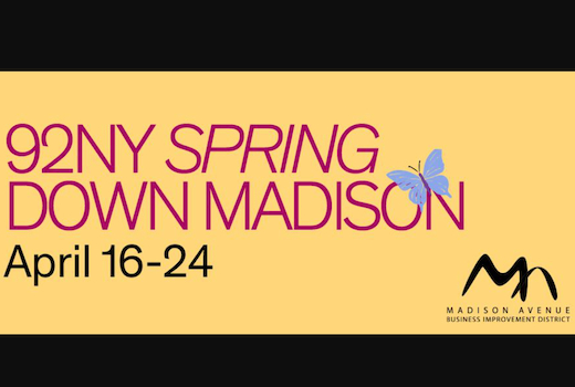 Delight in a new shopping event on Madison Avenue - "Spring Down Madison" in partnership with the 92nd Street Y, April 16-24. It is a unique 9-day shopping event for 92NY supporters and the public who purchase a VIP Pass for $150 that will directly benefit the art & culture and educational programs of this UES icon.