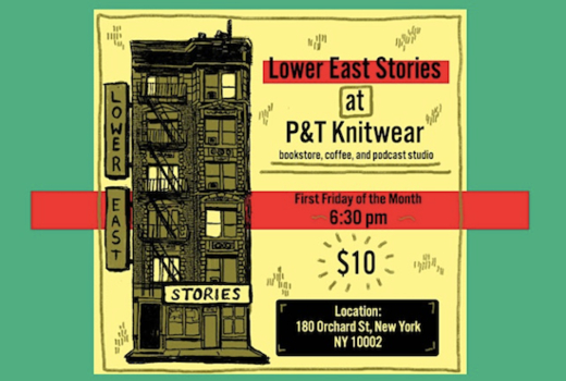Lower East Stories, hosted by Matt Storrs brings the best NYC creatives together for an early evening storytelling salon. They host a variety of experts, professionals, and ne’er-do-wells whose work has been featured on The Moth, Comedy Central, PBS, and at fringe festivals around the world.