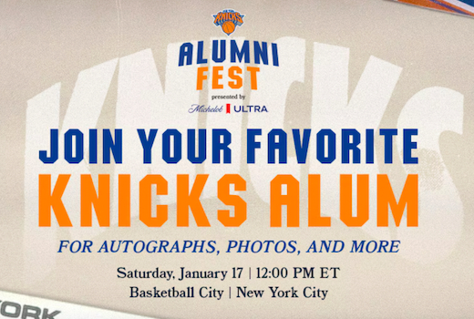 Register for the New York Knicks’ second annual Alumni Fest presented by Michelob ULTRA and meet Knicks legends like Walt “Clyde” Frazier, John Starks, Latrell Sprewell, Danilo Gallinari, Nate Robinson, Zach Randolph, Larry Johnson, and more, with opportunities for autographs and photo sessions, on-court activities including the Alumni Shootout Sweepstakes, and snacks and beverages provided by the Knicks and Michelob ULTRA (must be 21+).