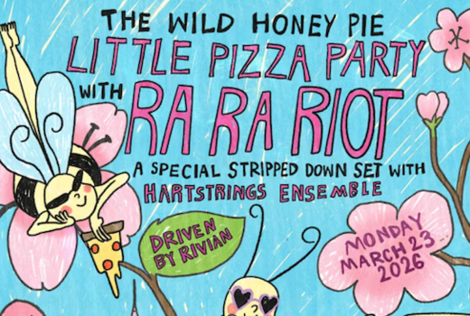 Join for The Wild Honey Pie Little Pizza Party with a special 4-song mini performance and live session with Ra Ra Riot accompanied by Hartstrings Ensemble, and endless yummy pizza. Pizza and drinks on the house while supplies last.