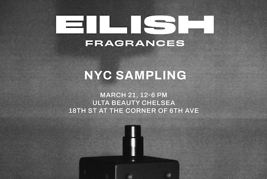 Join Eilish Fragrances and Ulta Beauty for a special sampling event this Saturday, March 21st, in Chelsea to celebrate National Fragrance Day! Stop by the Ulta Beauty Chelsea location from 12:00pm-6:00pm to receive a complimentary sample of Your Turn II, the latest fragrance from Billie Eilish, and pick up an exclusive Billie Eilish poster—available while supplies last.