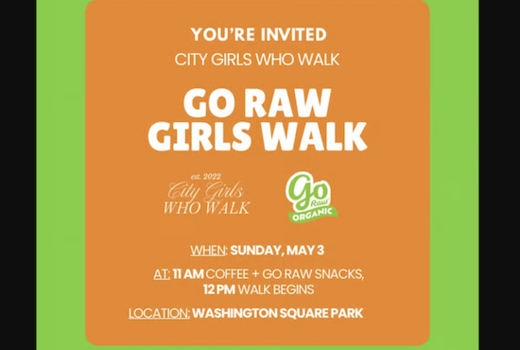 Join Girls Who Walk for a Sunday stroll with Go Raw! The first 200 people in line with an RSVP will score a tote filled with Go Raw snacks and merch, plus complimentary coffee for everyone (one per person, while supplies last)!