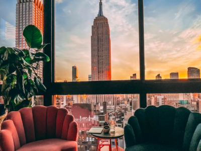 Perched high up in the Manhattan skyline, Daintree Rooftop & Lounge showcases some of New York City’s best views. Daintree’s relaxed interiors allow the dramatic 29th-floor skyline views to stand at the forefront, creating a metropolitan-meets-bohemian vibe in the heart of Manhattan. Flushed with greenery, the cocktail lounge features an antique mirrored-bar, vibrant plush seating and woven accents.