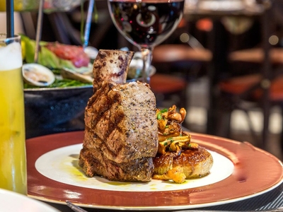 Just steps from Madison Square Garden, Macy’s, and Broadway theater DK Restaurant is contemporary spin-off steakhouse that boasts a sleek marble bar, deep red leather banquettes, and candlelight tables. Perfect for lunch, a drink after work, or dinner before the big game.