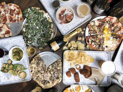 The menu draws inspiration from the Eternal City’s bustling neighborhood pizzerie that churn out thin-crust pizzas, fried snacks, and seasonal antipasti—think quattro formaggi pizza, crisp risotto croquettes, capricciosa salad with chicory, artichokes, olives, and mushrooms, and affogati for dessert. To drink, Martina offers cold craft beers and classic Italian wines by the glass, alongside affordable half-bottles of Champagne in the tradition of pizza-loving wine enthusiasts everywhere.