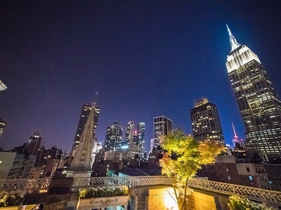 Midtown Loft is both striking and functional with high ceilings, marble bathrooms, central air, adjustable spot lighting, and a fully equipped kitchen. The space provides an upbeat style and sophistication with its location on the world’s most famous avenue. Large windows on all four sides offer stunning views of the skyline while letting in natural light to complement the warmth of the polished oak flooring.