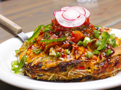 Pronounced OH-KOH-NO-ME-YAK-I, okonomiyaki is a