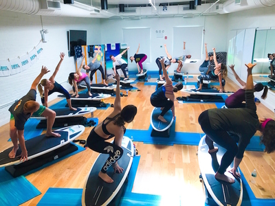 At SURFSET NYC, we specialize in the SURFSET® Fitness workout, a full body workout inspired by one of the world’s most athletic sports - surfing! While it's not a "learn to surf class" or a replacement for surfing (which would be very challenging without actual waves or water in the room!), we bring surf inspiration into each class in a few different ways. 1. Surf Muscles & Skills - We draw from the real movements of surfing to build balance, core strength, stability, agility, aerobic conditioning, power, lean muscle and coordination. Whether you take one of our interval-based classes (Blend, Burn or Strength) or our SURFSET® Yoga class, our trainers will take you away from the traditional static workouts and challenge your body in new ways. 2. Body Awareness & Stability - The SURFSET® Board (Rip SurferX), a 6-foot long surfboard on top of three balance balls, is designed to mimic the feeling of being on water. The instability of the board adds an extra challenge to every exercise we do. As you progress in your SURFSET® practice, we can adjust the board to add additional instability and build body awareness in an ever-changing environment. 3. Fun & Adventure - Our overall fitness mission is to create unique workouts that are equal parts challenging and fun! Not only will we bring the extreme physical benefits of surfing to each workout, but we will also bring the fun, adventurous spirit of a surf session to every class. So, what are you waiting for?! #GetSaltyNYC