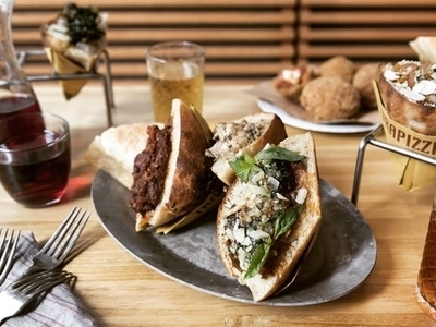 Created by acclaimed Rome-based pizzaiolo Stefano Callegari in 2008, Trapizzino is an original invention that marries Old World recipes with a modern format. Inspired by a desire to serve traditional recipes in a new way, Stefano merged the triangular shape of the popular tramezzino sandwich with leavened plain pizza dough (called pizza bianca in Italy). He baked pockets of his pizza bianca, then filled them with classics of Roman home cooking. Today there are seven locations in Rome, two in Florence, and only one in the U.S. - found in NYC, on the Lower East Side.