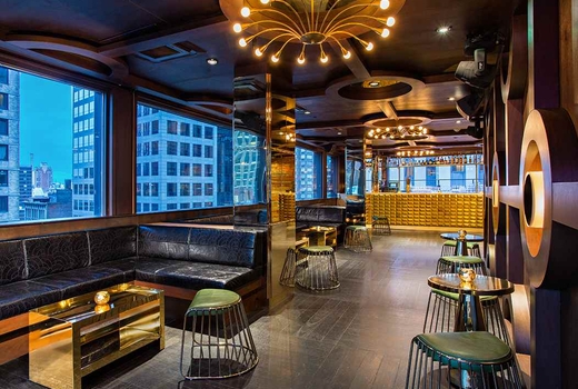 The 16th floor resembles an amplified penthouse patio, offering guests an option to imbibe al fresco with spectacular views of Times Square and Midtown Manhattan.