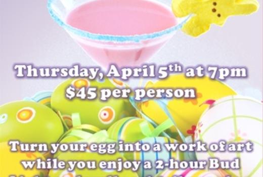 Tickets include egg, decorating kit, 2-hour open bar, and specialty themed cocktail. Food items will be available for purchase.