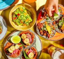 Revel in a four hour open bar and raise your glass to the ancestors as you sip these exquisite creations across two lively floors, two bars, and the open-air margarita garden, each space glowing with marigolds, candlelight, and music. Plus, dive into the Taco Bar repping tacos filled with al pastor, chicken shawarma, and sweet potato, complemented by guacamole, salsas, and crispy chips.