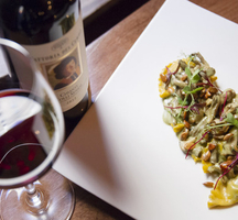 At Cacio e Vino, chefs craft a menu of authentic Sicilian specialties made from fresh, imported regional ingredients such as bronte pistachios and giarratana onions mined from the Iblei Mountains. Recently, Cacio e Vino has broadened its menu to include the traditional Bucatini con le sarde, and 13 varieties of the singular Nero d’Avola wine, ‘the most important red grape wine in Sicily.’