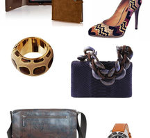 Men's Selection: Travel accessories, messenger bags, cuff links, scarves, ties, watches, hats, and electronics accessories.