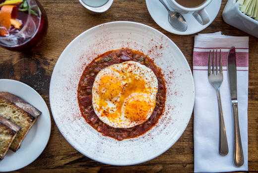In a setting of exposed-brick walls and vaulted ceilings take your pick from entrees that include egg dishes, paella, salads, crepes and Spanish French Toast - all with a very special twist and flavors of Northern Spain.