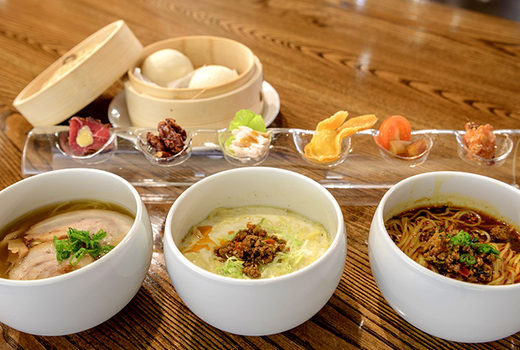 Then, you will each enjoy the 3 most popular flavors of the restaurant's signature dish, Ramen Sorba: 1 bowl each of Spicy Dan Dan, Soymilk Dan Dan & Chashu Ramen.