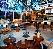 The entire space is encased by glass walls, allowing guests to view the city lights and enjoy the classic Manhattan skyline while remaining in the chic & intimate confines of the rooftop.