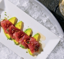 Menu standouts include Toro Taquitos (tuna tartar, peanut butter aioli and chimichurri), Salmon with Romesco Sauce, and the Rib Eye (glazed with aji panka and served with yucca fries). The eclectic menu may span continents in a single dish, but always to a perfectly delicious combination of flavors and textures.