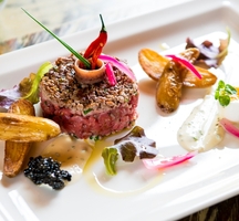"Ate here tonight and it was AMAZING! The carpaccio is to die for, especially with the crispy artichokes atop. Great wine selection. Beautiful decor, talented and hospitable staff. Can't say enough good things. Great spot and get the carpaccio."