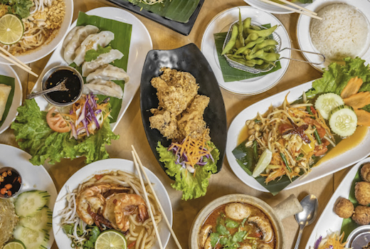 While you sip, sink your teeth into the Seafood Pad Cha studded with calamari, shrimp, mussels, green peppercorns, holy basil, kaffir lime leaves, garlic, and Thai chili basil sauce, not to mention the signature Massaman Curry cooked in a rich, flavorful coconut broth with your choice of protein, carrots, onions, and peanuts.