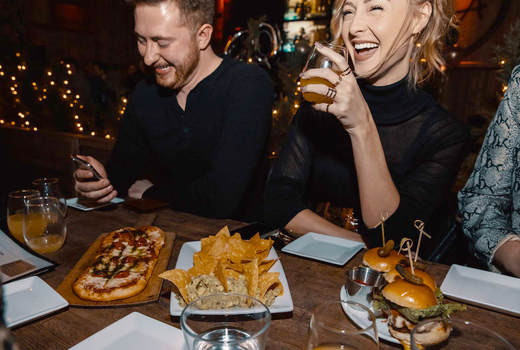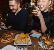 Tuck into the luscious fare such as Beef Sliders or juicy Wings, and snuggle up in one of the cozy velvet booths, clinking glasses with your neighbor whether your team is winning or losing.