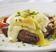 Bold and inspiring flavors begin with the cocktails, namely mixtures like the Red Sangria, as well as the michevious Classic Mojitos. From there, you'll dive into plates of Eggs Benedict (poached eggs, English muffin, hollandaise sauce, home fries, choice of ham or spinach).