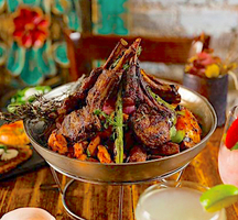 The atmosphere is filled with convivial chatter, exciting energy, the sounds of clinking glasses, and the aromas of fresh, succulent meats & seafood drifting from the kitchen. The scene is warm and inviting, all with a chic and sophisticated edge via dramatic 12-foot beamed ceilings, vintage mirrors, iron light fixtures, and reclaimed wood that all adds to the charm.