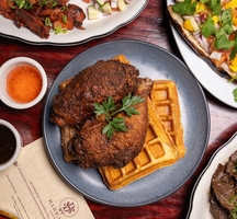 Sink your teeth into the Barkada Burger stacked with house-made pan de sal, a juicy double patty, cheese, house sauce, lettuce, tomato, onions, fries, and the optional fried egg, wetting your whistle with never-ending pours of Mimosas, Bellinis, Sangrias, and Narragansetts. The Lechon Kawali is also a staple, boasting twice-cooked pork belly, deep-fried golden & served with spiced vinegar for dipping.
