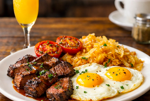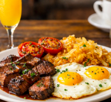 • $8 upcharge for Steak & Eggs.