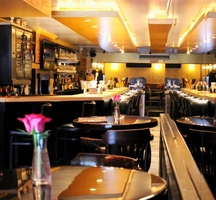 With a long blond wooden bar, soft lighting, vintage Parisian posters and cozy seating arrangements, Kiss My French is a chic bistro serving updated French classics and distinctive wines.