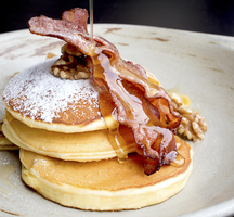 Mimosas will pair well with the lovely, fluffy Blueberry Pancakes. Bigger appetites will adore the Grilled Chicken Avocado Sandwich & French Fries, as well as the loaded Western Omelet studded with ham, onions, peppers & mozzarella with home fries.