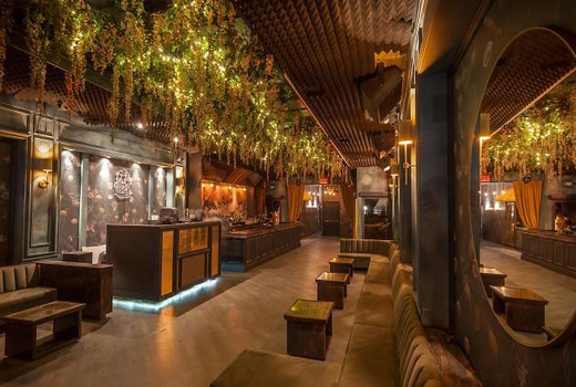 The cascading wisteria that sparkle mysteriously, distressed floral wall paper, antique bird cages, and custom-created candles invite you to curl up on a banquette - a cocktail in hand - and take in the seductive performances of burlesque dancers and contortionists.