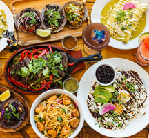 Be transported to the shores of Tulum amidst bright bohemian-coastal interiors, or savor the fresh air & city feels outside, sipping on a Passion Fruit Margarita while tucking into fresh Shrimp Ceviche, followed by meaty mains like Fajitas with rice, beans, crema, tortillas, & guac, not to mention the Pescado Tacos repping beer-battered cod, cabbage slaw, chipotle mayo & mango.