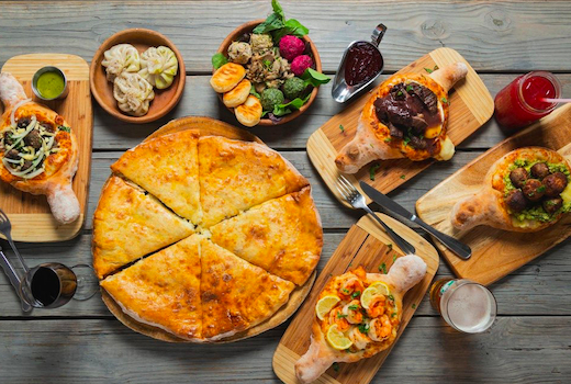 Pop open a bottle of rosé & bite into Khinkali Soup Dumplings stuffed with beef, Georgian spices & herbs, and served with garlic Neeor'tskali sauce. Next up, drool over the signature cheeseboats, namely the Steak'n'Mushroom - think steak, oyster mushrooms, melted mozzarella & feta encased in a bread "boat" & served with red wine sauce.