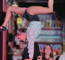 The seductive sounds of the Quintin Harris Trio set the tone, wrapping the room in smooth jazz while a cast of world-class performers plucked from the stages of Fuerza Bruta, Big Apple Circus, Cirque du Soleil, La Soirée, and Broadway ignite the space with acrobatics, comedy, magic, and sheer audacity. Ambrose Martos, Angela Buccinni Butch, and Dia Seskin lead the charge, their acts unfolding with intimacy and intensity.