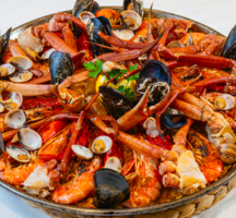 Imagine, as the doors open, you slip into a scene where secrets are whispered behind glittering masks, and every glance holds a promise. Sip on intoxicating libations as you get festive with party favors and devour a feast fit for royalty, featuring everything from delicate Ceviche and indulgent Seafood Paella, to perfectly seared Steak and an assortment of sweets.