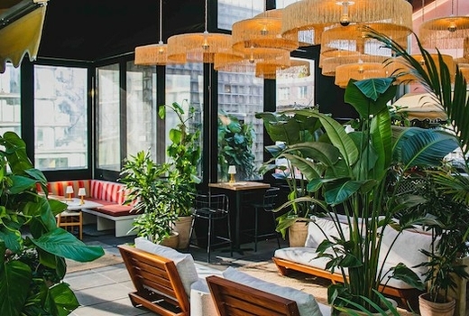 While a far-flung Cabo escape may be on hold, this rooftop delivers its own brand of warm-weather fantasy. Thanks to a temperature-controlled, retractable roof, Creatures stays blissfully cozy all winter long, transforming into a coastal-leaning refuge in the middle of Manhattan. Sun-drenched moments give way to golden evenings, with cascading greenery, swaying straw chandeliers, and hammocks that invite you to slow down and stay awhile.