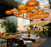 Wrapped in a coastal mood and chic bohemian décor, linger over a bold libation or a decadent glass of wine as you cozy up below the enclosed rooftop space that will keep things warm & enchanting. Dive into Seoul Fire Kalbi, aka Korean overnight-marinated beef short rib kissed with Asian BBQ sauce, or the Golden Salmon, glazed in white miso and nestled beside velvety mushroom risotto.