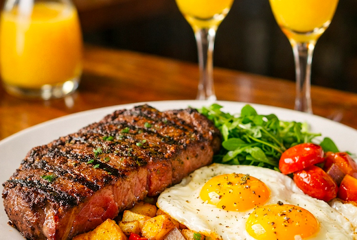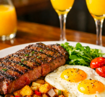 Think endless pours of tangy Mimosas and sublime Sangria sided by plates of Fried Lobster & Vanilla Waffle repping Asian Cajun oil marinated lobster tail lightly fried on top of vanilla & cinnamon infused waffle with fresh berries, bourbon honey caramel sauce & syrup, or the Steak & Eggs paired with a side of seasoned home fries.